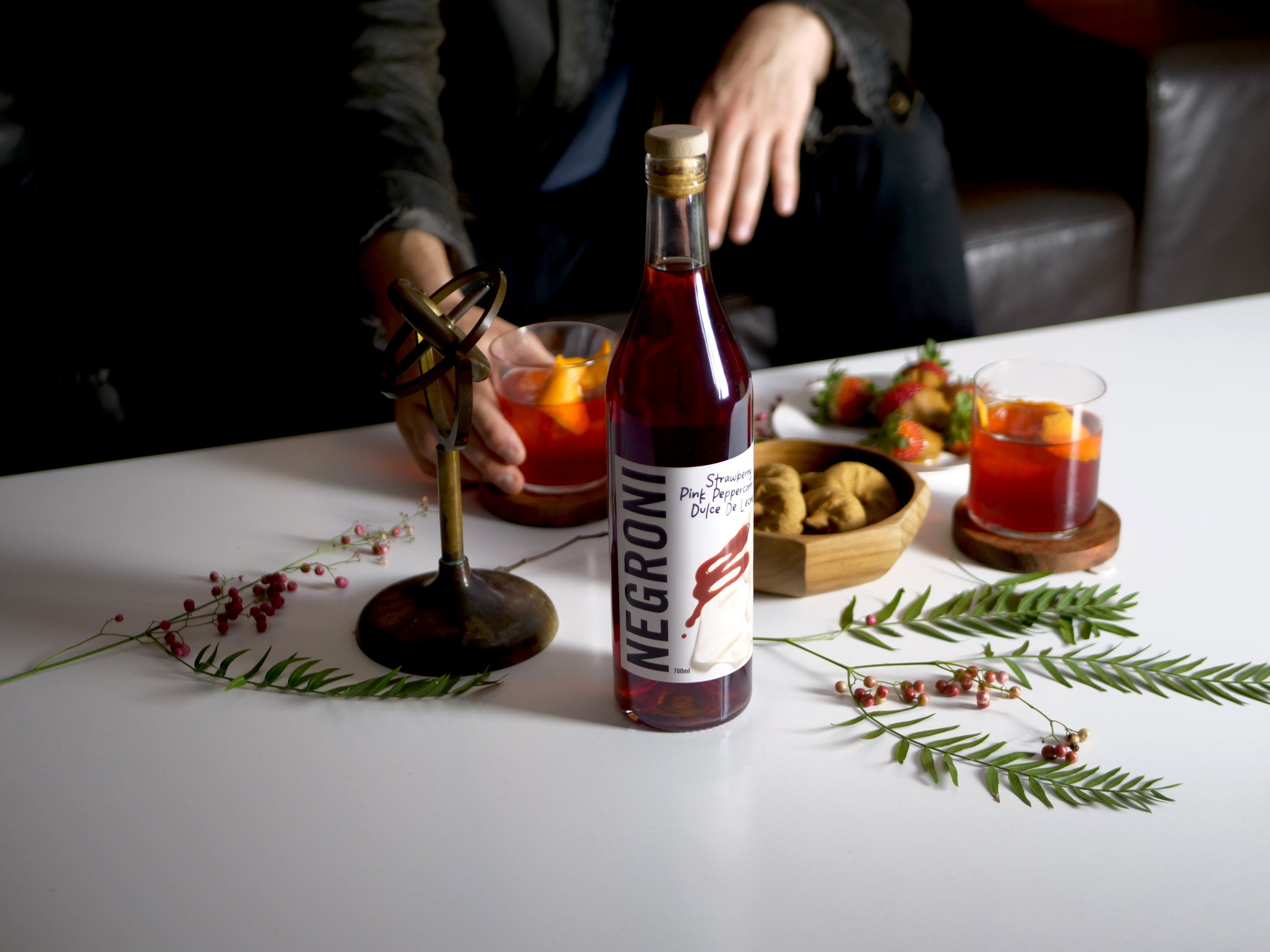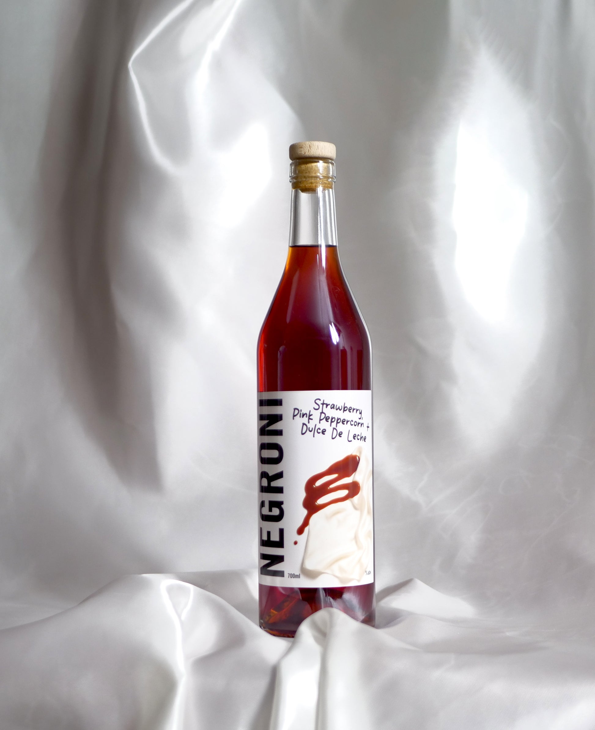 We start with our Tickled Pink Strawberry Gin, then blend it with Okar Bitter and Naturi Rosso Vermouth before infusing the mix with local pink peppercorns and decadent Dulce de Leche. After a two-week maceration, it’s chilled and clarified to create a spirit that’s buttery, velvety, and dangerously drinkable.